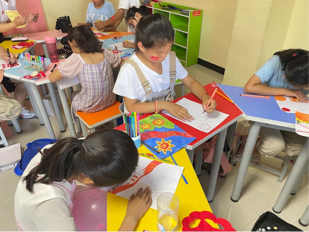 此次实践活动将党史宣讲和艺术文化进行融合,为留守儿童组织了一系列丰富多样的活动,包括党史主题画展剪纸和绘画课程趣味互动活动等。党史主题画展让孩子们感受到红色精神,传承红色基因,一颗颗爱国种子在他们心中萌芽。剪纸课程让孩子们感受到传统文化艺术的魅力,感悟中国传统文化的奥妙。绘画课程让孩子们发挥想象,天马行空笔不停,童心向党,畅想未来绘梦图。内容丰富多彩、趣味盎然的体育活动,让孩子们在体验快乐运动的同时,提升身体素质。