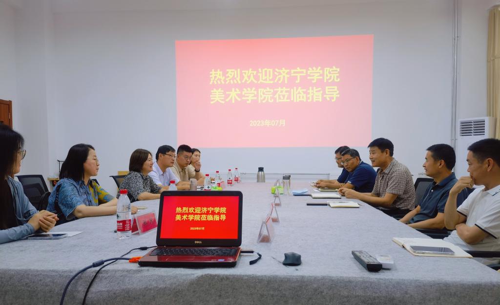 学院党总支书记王剑首先对杨晓青一行表示欢迎,并介绍了学院的整体工作情况。杨晓青对学院的热情接待表示感谢,重点介绍了济宁学院美术学院建设发展状况及就业工作开展情况,希望双方加强联系交流、互学互鉴、共同发展。随后,双方围绕2023届毕业生就业情况、存在困难及应对举措进行了深入的交流。