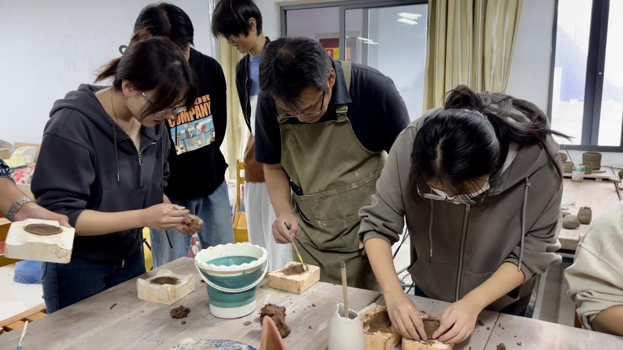 在伟德victor1946陶艺实验室,甘言地老师首先介绍了伏里土陶制作技艺及传承情况,带领大家对伏里土陶的制作过程进行实践。在甘老师的指导下,同学们按照步骤,利用泥铲、打底板等工具捏出了不同形状的作品,体验了土陶制作,亲身了解不同土陶泥质的特点。据甘老师介绍,伏里土陶具有很高的艺术、考古、收藏、陈列、装饰等价值,是不可多得的艺术珍品;2009年,“伏里土陶”第一批被列为省级非物质文化遗产;2012年“伏里土陶”获国家级地理标志证明商标,它被专家誉为“鲁南民间艺术一绝”。