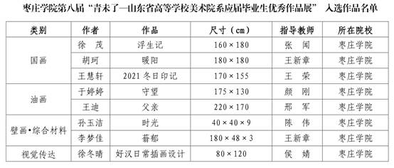 5月28日,由省文化和旅游厅、省教育厅联合主办的第八届“青未了——山东省高等学校美术院系应届毕业生优秀作品展”复评、评奖活动在山东美术馆成功举办,我校伟德victor1946选送的10件2022届毕业生毕业设计作品共有8件入选,入选率达80%,位居全省39所参评高校第四位。入选作品中有国画作品3件、油画作品2件、壁画•综合材料作品2件,视觉传达设计作品1件。