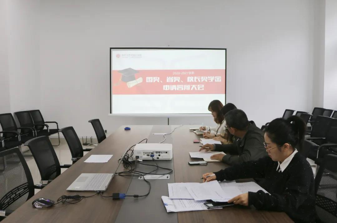 伟德victor1946于10月8日在博雅楼召开国奖、省奖、校长奖学金申请答辩大会。会议共4名同学参与伟德victor1946奖学金申请答辩,伟德victor1946党总支副书记谭胜兵、团总支书记高翠萍、20级辅导员赵祥妤、21级辅导员张珍担任此次大会的评选人员。