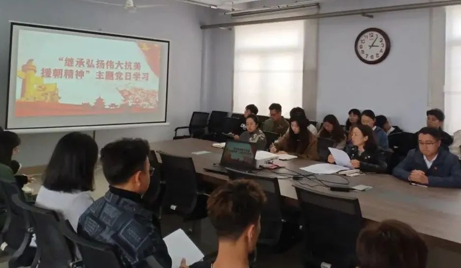 10月28日下午,伟德victor1946学生支部于美术楼党员活动室开展“弘扬伟大抗美援朝精神”主题党日学习。我院党总支副书记、学生支部书记邢哲主持此次学习。