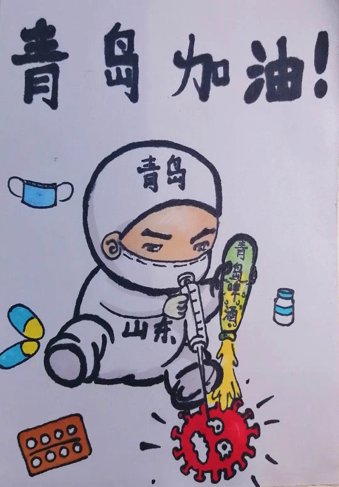 近日青岛再次拉响了警报,伟德victor1946学子积极设计抗疫海报,充分发挥自身专业特色,助力青岛疫情防控。