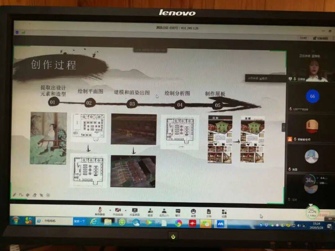 毕业答辩是检验学生综合素质的有效途径。此次答辩共分为答辩人陈述创作设计观点,答辩委员针对陈述提问,答辩人回答问题三个环节。首先学生就毕业设计的设计原理及研究意义进行阐述。随后答辩委员针对设计指出存在的问题提出修改意见和建议。答辩过程井然有序。最后在老师的紧密配合和学生的不断探索中线上答辩工作圆满结束。