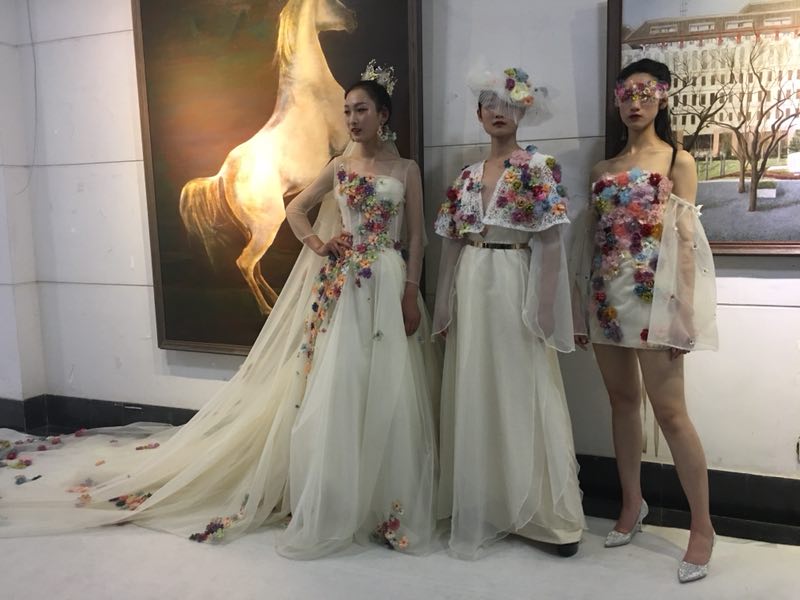 开幕式邀请我市新时尚模特空乘学校时装模特友情演绎时装秀,我院产品设计专业几位毕业生的服装设计作品压轴出场惊艳全场!中间40名大一男女学生倾情演绎口罩秀。