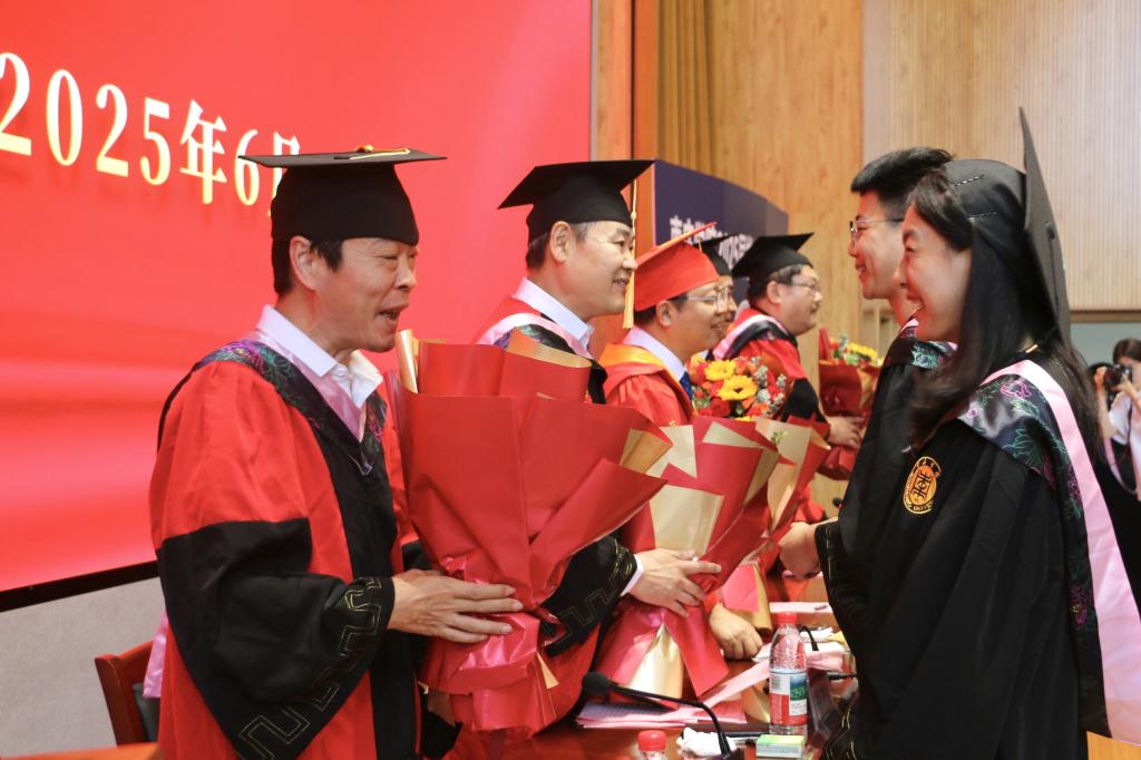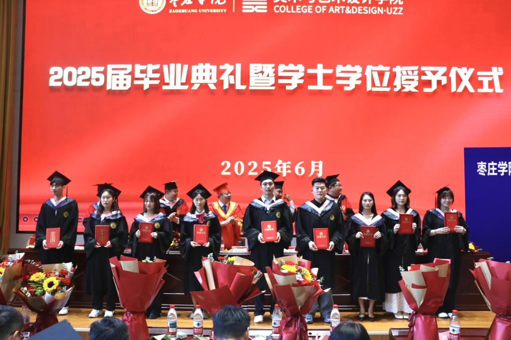 上午10时,毕业典礼在庄严的国歌中拉开帷幕。副院长厉相帅宣读了bevictor伟德国际1946学位评定委员会《关于授予董子怡等本科毕业生学士学位的决定》,校党委委员、副校长李目海依次为本科毕业生逐一拨穗正冠,颁授学位证书并合影留念。随后,领导们为10位校友联络员颁发聘书,为6位学生代表佩戴院徽,并向留校作品学生代表颁发留校作品收藏证书,用证书定格艺术成果的永恒价值。教师代表、书法教研室主任杨雯,毕业生代表冯晨阳,在校生代表杜依芮依次发言,各班毕业生代表为教师献花,对老师们的悉心教导和辛勤付出表示衷心感谢。最后,学院党委书记王剑发表致辞,向即将踏上人生新征程的全体2025届毕业生表示衷心祝贺并送上美好祝愿。