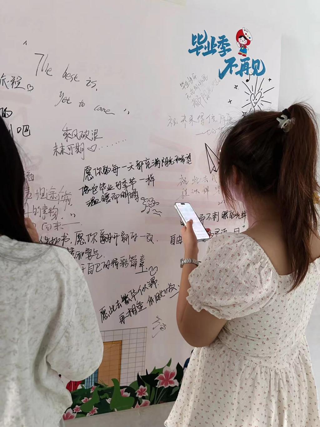 活动初始,在活动现场为大家精心准备了打卡墙作为毕业生打卡留念的记录点,展板上满是对未来的期许与对母校的眷恋;物品收集阶段,9号楼409一站式学生社区(心理辅导站(辅导员工作坊))、2号楼329一站式学生社区(心理辅导站(辅导员工作坊))的收集箱每日都收获颇丰,既有专业画册、设计手稿等承载知识的书籍资料,也有画具、摆件等饱含创作温度的物件等。志愿者们细致分类、登记造册,让每一份心意都有迹可循;爱心传递阶段,将整理后的物品在社区内集中展示,在校生们可根据需求免费登记领取,剩余物品用于布置学生“一站式”社区等其他方式妥善处理,让毕业季的温情以另一种形式留存。