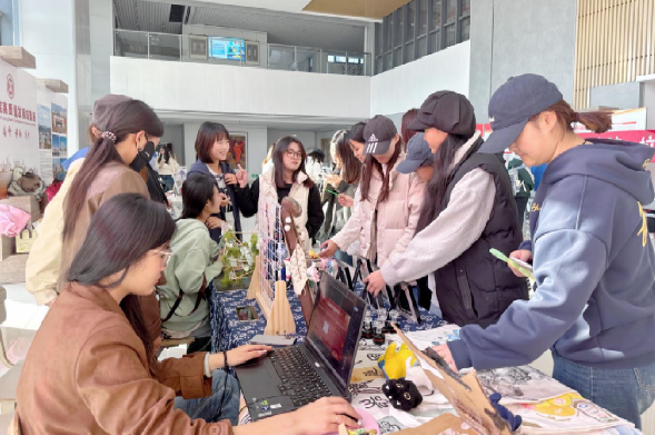 本次创意集市创新性打造红韵墨艺展示区、橙梦创意市集坊等七大特色区域,内容涵盖环保文化宣讲、创意手工售卖、诚信闲置交易、旧物二次利用、公益爱心捐赠、权益保障服务及师生互动留言七大板块,形成了集文化传承、创意展示、公益践行于一体的校园文化盛宴。统一设计的标识牌清晰明了,为师生参与活动提供了极大便利。精心布置的摊位上,手工文创作品、闲置好物、旧物改造艺术品等琳琅满目。摊主通过现场手工制作演示、产品试用体验等特色环节,充分展现创意巧思与动手能力,吸引了大批师生驻足观赏、咨询选购。此外,志愿者们还通过案例讲解、知识问答等形式向同学们普及低碳理念,现场气氛热烈。