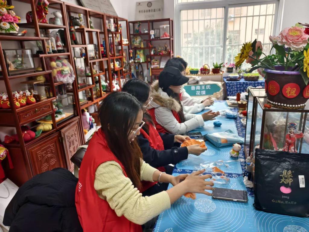 志愿者团队为传承非遗技艺,挖掘非遗文化,前往龙山街道王欣非遗工作室进行调研和实践。王欣是鲁南花馍和鲁南布艺的非遗传承人,现场王老师向全体志愿者系统阐释鲁南花馍与鲁南布艺的历史渊源、文化内涵及艺术特色,全方位展现非遗项目的传承价值与时代活力,同时参观鲁南布艺作品陈列展,结合实物样本详细讲解了鲁南布艺制作的基础流程、核心技艺。在“非遗鲁南花馍”动手实践环节,大家采用安全环保面塑材料,围绕马年主题开展造型创作设计与制作。志愿者们系统研习面艺捏制、纹饰装饰等基础技法,完成小马造型面塑作品20件。