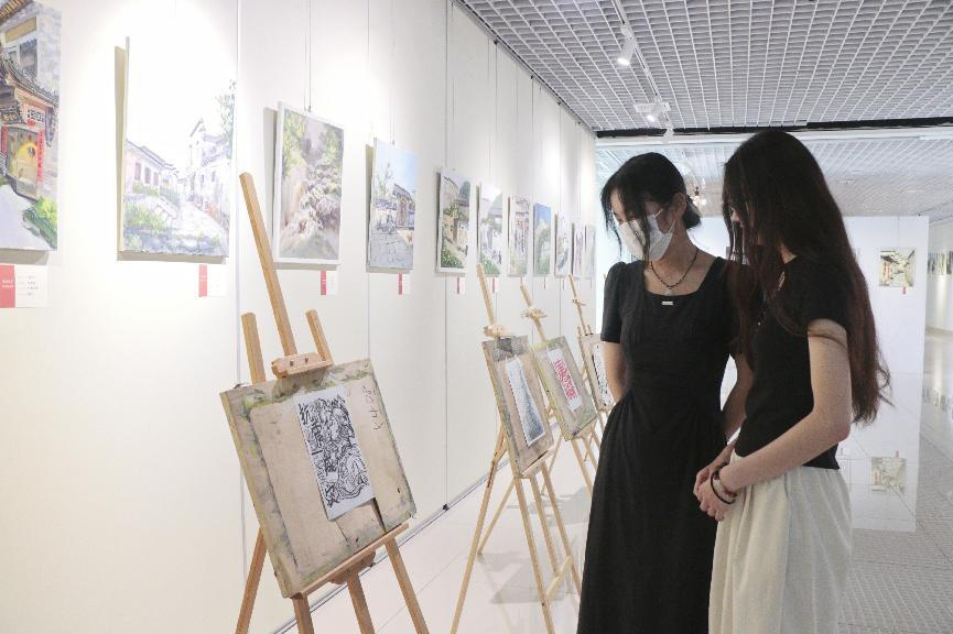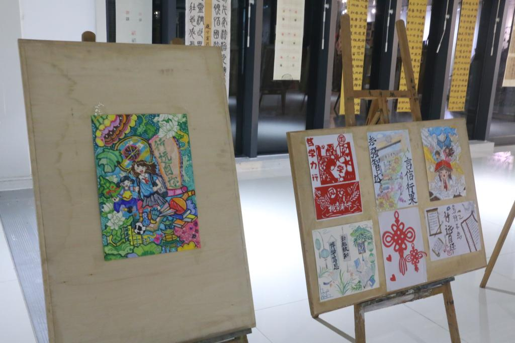 本次展览共征集到书画、设计作品200余件,经专业评审,最终遴选出120件优秀作品参展。展品涵盖国画、油画、书法、环境设计、视觉传达设计等多个门类,题材丰富多元。一幅幅书画作品中,或勾勒祖国山河的壮阔雄奇,或描摹校园生活的温暖点滴,笔墨间尽显创作者对自然、对生活、对时代的深刻感悟;一件件设计作品里,融入传统文化元素与现代设计理念,兼具美学价值与实用功能,展现出学院学子扎实的专业功底与创新思维。展览现场,佳作整齐陈列,吸引了众多师生驻足观赏。社团成员化身讲解员,热情地向参观者介绍作品的创作思路与背后故事。现场洋溢着浓厚的文化气息。
