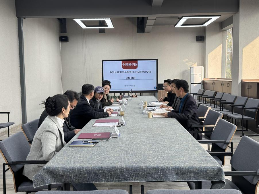2025年12月11日,我院党委书记王剑一行赴湖北美术学院中国画学院,围绕硕士点建设、人才培养、教学科研等工作进行专题考察交流。湖北美术学院党委常委、中国画学院院长郝孝飞,中国画学院副书记陈捷,副院长朱国栋、熊明非,山水花鸟画系主任万国龙,工笔人物画教研室主任李思洁参与交流活动。