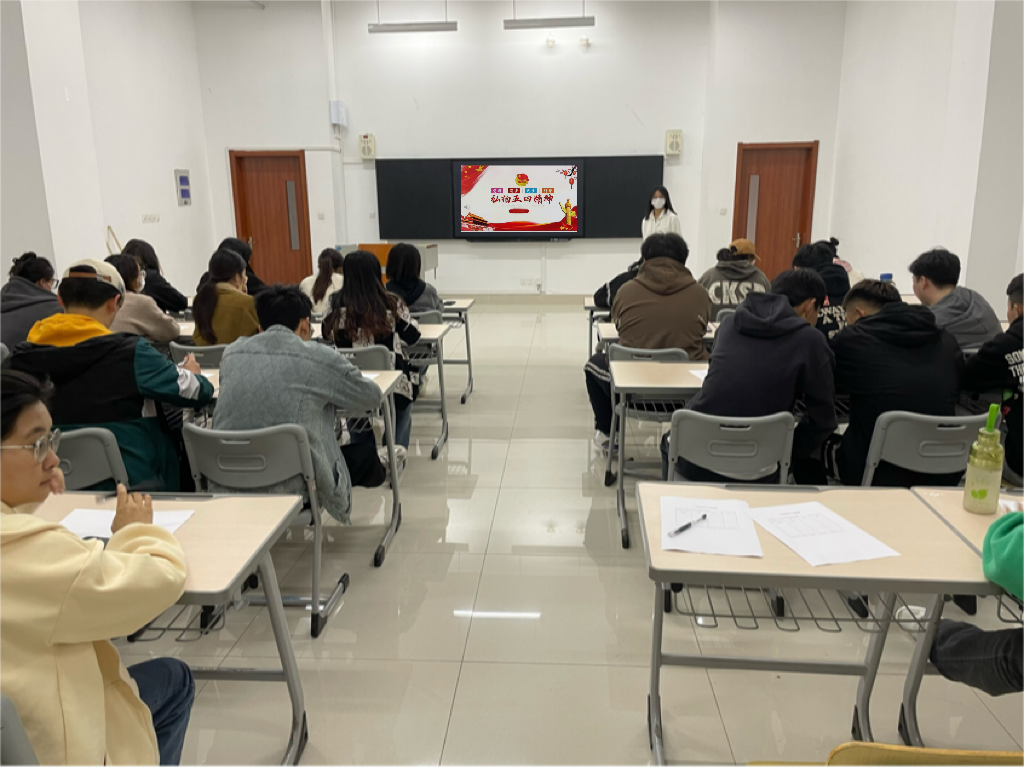 各团支部先后开展了“学团史、争先锋”主题团日、“五四精神”主题书画创作、“五四精神”宣讲活动。“学团史、争先锋”主题团日活动包括主题团课、知识问答、分享交流和重温入团誓词四个方面,通过理论学习、演讲、心得分享,观看影片等“沉浸式”仪式教育,引导广大团员青年继承五四精神,坚定理想信念。青年学子以笔为寄,以画寄情,围绕“五四精神”为主题创作书法、插画、海报等艺术作品50余幅。围绕“弘扬五四精神,汲取奋进力量”为主题开展宣讲活动,从五四运动的相关介绍、五四精神的时代内涵等方面进行宣讲,取得到了良好的效果。
