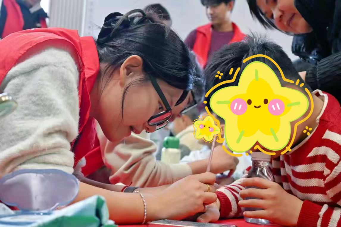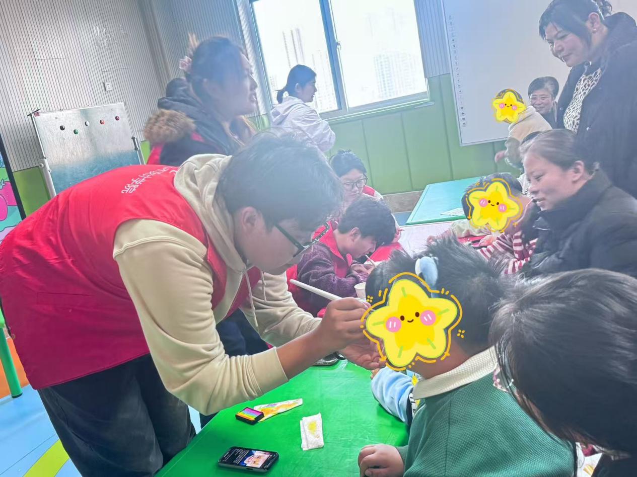 活动紧密围绕“当先锋、作表率”的实践宗旨,发挥美术专业特色,为30名残疾儿童带来了不一样的美育体验活动,活动内容包括面部彩绘、留住笑脸亲子照等部分。志愿者与小朋友耐心交流,根据小朋友喜爱的主题需求,用专业安全的植物彩绘颜料,在小朋友稚嫩的脸庞、手上用线条勾勒出俏皮可爱的图形,用色彩绘出色彩绚丽的图案。在温馨拍摄区,志愿者们用镜头定格下一张张灿烂的笑脸和一个个充满温情的“全家福”瞬间。现场还设置了“表情模仿秀”“彩虹传球”等互动游戏,志愿者全程耐心引导,让小朋友们在游戏中学会协作与分享,在欢声笑语中有效促进了他们对爱的感知,对美的理解。