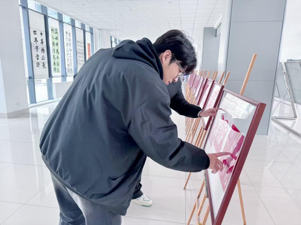 校党委副书记丰雷,枣庄市关工委副主任、校关工委常务副主任徐玲参观指导本次展览,学生工作处、离退休工作处、团委等部门负责人陪同。本次书画展共征集作品300件,展出作品80件。作品以雷锋形象、雷锋日记、雷锋语录为创作元素。展出作品风格多样、形式丰富,涵盖了绘画、书法、海报、剪纸等多种艺术形式,同学们以独特的视角和艺术手法展现了新时代大学生对雷锋精神的理解与传承。其中,书法作品创作中充分发挥“社团-指导教师-课程教学”的同向同行作用,将雷锋精神贯穿到书法课程中,在课程教学中融入雷锋精神,发挥了课程思政育人的效果,擦亮了雷锋精神传承。