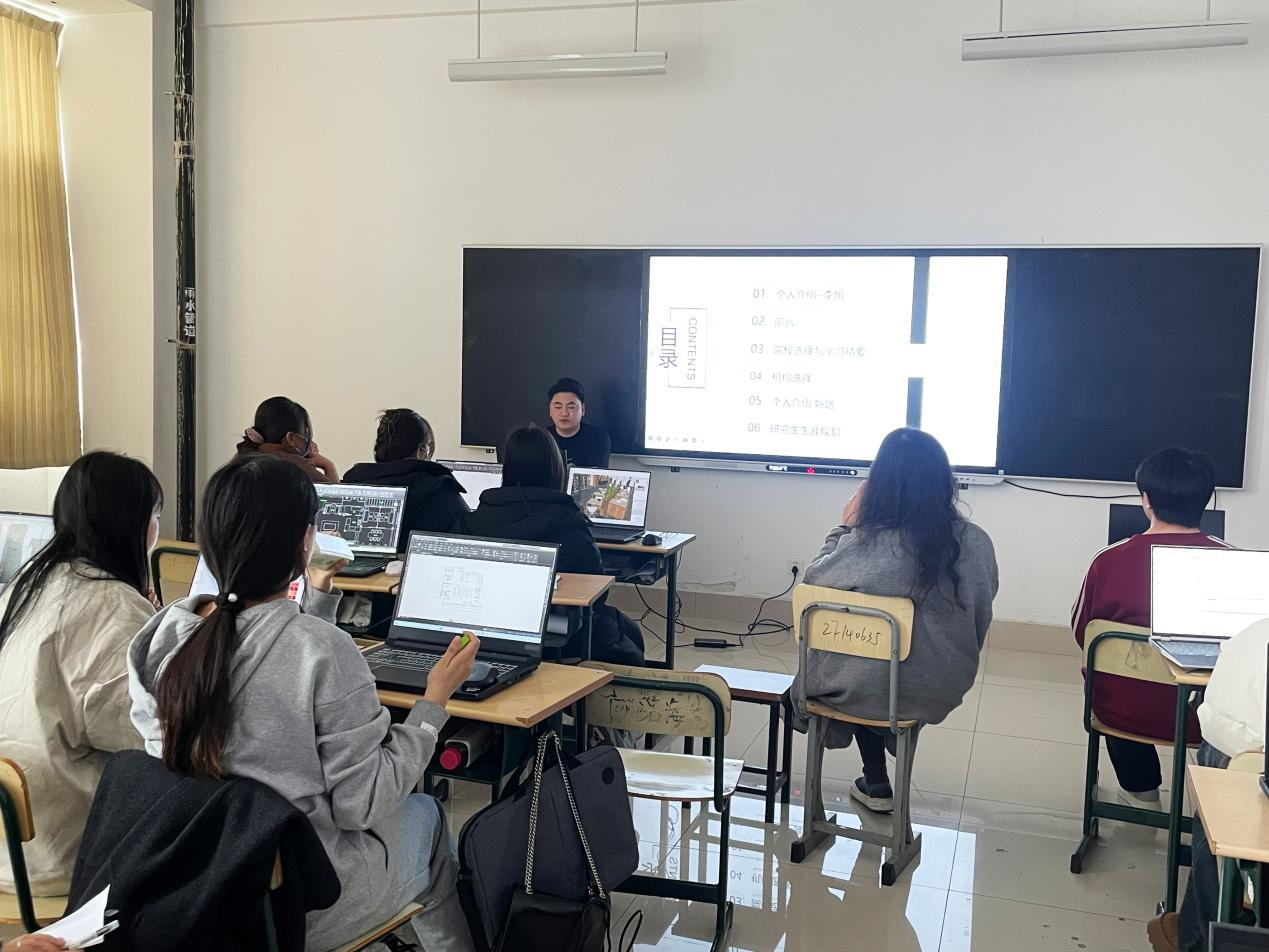 此次活动邀请两名往届考研成功上岸的优秀校友来校做考研经验分享和复试指导。首先,优秀校友为2022级环境设计专业学生分享了自己的考研经验,结合自身经历,从考研的形势和政策、院校专业选择、科目复习策略、时间分配技巧、心理素质等方面进行全方位解读,引导同学们全面了解考研相关准备,为计划考研的同学提供了积极的帮助。随后,优秀校友为2021级备战复试的同学们进行了一对一复试指导并为复试的同学提出了有效的建议,通过模拟复试的方式指导了复试流程、面试技巧等,帮助同学们提前规划,充分做好复试准备。