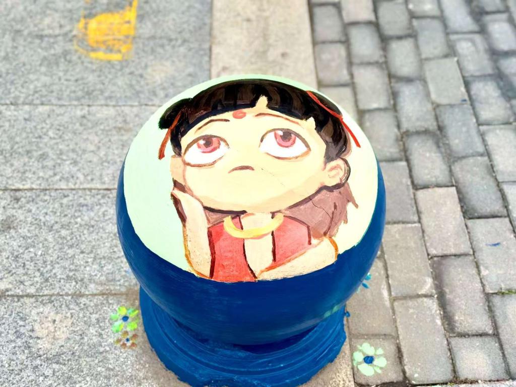 本次活动以“哪吒”“节粮”“光盘行动”为主题,以画笔为媒,同学们充分发挥专业特长,将传统文化、节约理念与雷锋精神巧妙融合,为校园石墩换上“新装”。同学们手握画笔与调色盘,充分发挥想象力与创造力,利用石墩的形状和特征,刷底色、铺背景、勾轮廓、勾边、填色,绘制出一幅幅充满正能量的图案。这些图案给石墩赋予了新的生命,营造了积极向上、健康文明的校园氛围。石墩在同学们的笔下添上色彩,为校园增添了独特的文化气息,成为校园里一道亮丽的风景线。