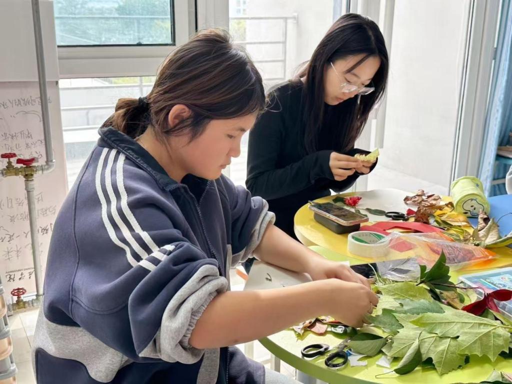 本次活动立足专业特色,聚焦传统美德,将传统文化与艺术实践进行了深度融合。同学们以“捡秋”活动收集的树叶作为主要素材,辅以彩纸、胶水、马克笔等材料,将敬老孝亲的元素融入作品的构思与制作中。在活动过程中,同学们紧扣重阳文化与孝亲感恩的主题,将自然之美与真挚情感巧妙融入作品,深切表达了对长辈的感恩之情与美好祝福。活动中共收集了32幅作品,其中一等奖3名,二等奖4名,三等奖6名,优秀作品将在“一站式学生社区”展示区陈列展示。