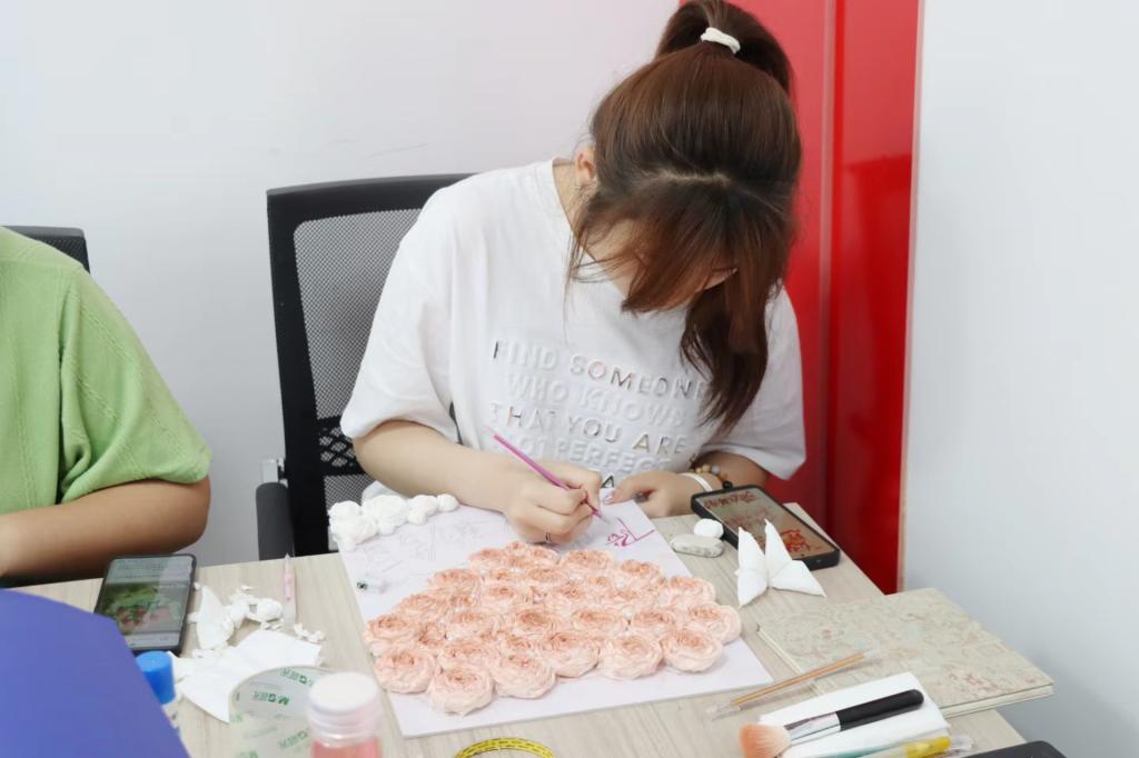 活动现场,学生耐心细致地进行手工制作,充分发挥专业特长,专心致志、调整修饰花束造型,将手中材料变成了一个个精美的手工艺品,创作出了一件件独具匠心的花束作品。学生制作一封封贺卡,以文字为媒,以句传情,倾诉了对母亲的无尽情感。学生将与母亲的照片精心地编排排列,打造成一本别致而有意义的小相册,每一张照片,每一个字句,都传递着学生们对母亲深深的思念和祝福。本次活动不仅展现了学生们的创意和艺术才华,更蕴含着他们对母亲深深的祝福和感激之情活动。