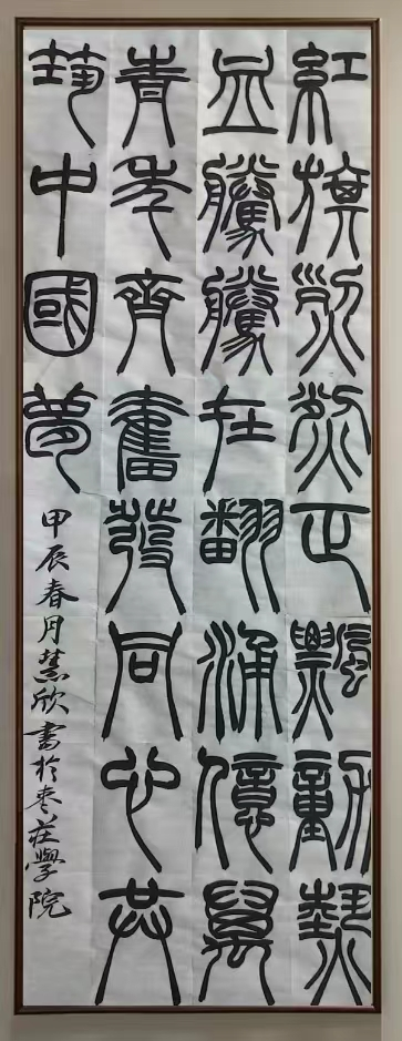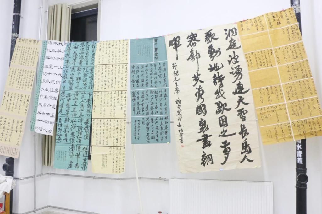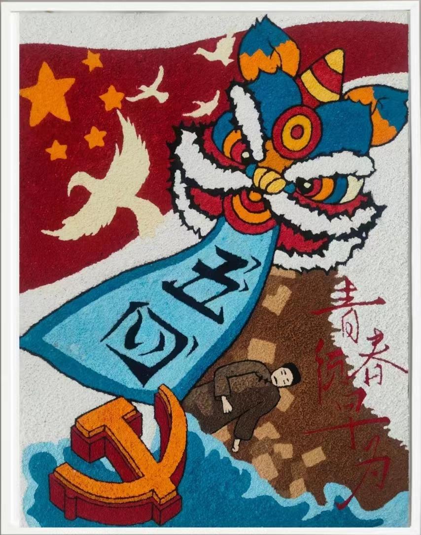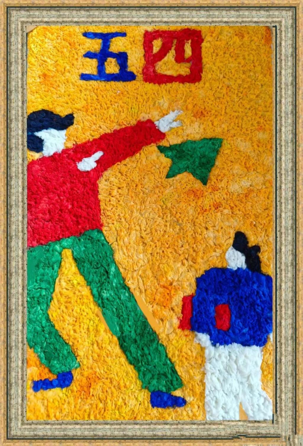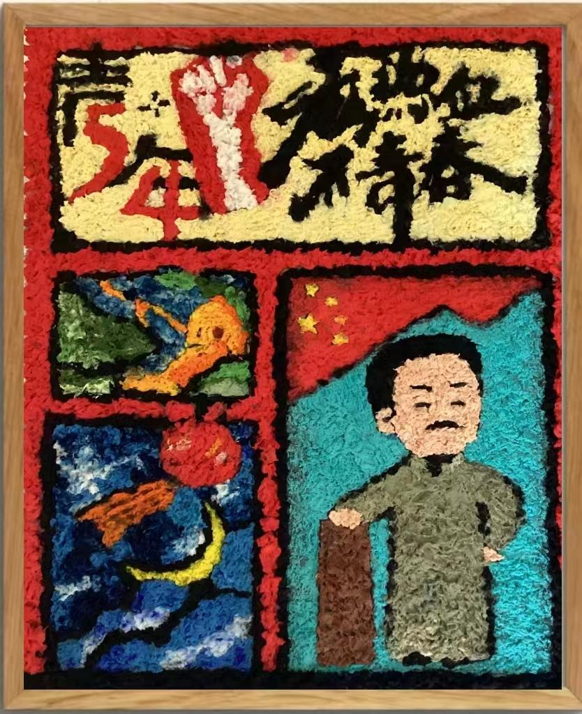 本次活动学生以独具匠心的视角和精湛的技艺,进行了书法、纸浆画创作,共创作了50余幅作品,展示了五四运动时期波澜壮阔的历史画卷,激发了青年学子的青春热情。书法创作以五四精神为主题,学生们用笔墨寄情,以作品言志,通过结合中华优秀传统文化的艺术形式,传承五四精神,激扬青春风采。在纸浆画创作中,学生们通过一幅幅精彩纷呈的作品,把自己对艺术理想的追求和国家、人民、时代紧密结合在一起,创作出有情怀有温度的艺术作品。