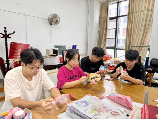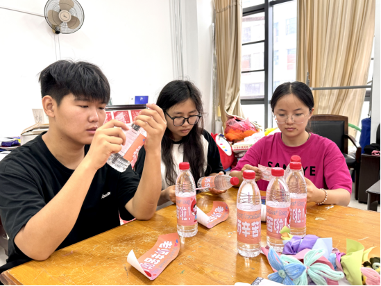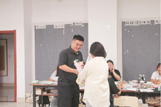 活动前期,学生们精心策划、认真组织,以画笔为媒,结合美术学专业创作国画作品20幅,以毛笔为介,结合书法学专业创作书法作品20件。为了表达对老师们的敬意和感恩之情,学生们用扭扭棒制作了40束美丽的花束。学生们结合视觉传达专业所学知识,设计矿泉水祝福语瓶贴,为老师们送上最真挚的祝福。一句句诚挚的祝福,一件件精心准备的礼物,承载着一份份厚重的爱,架起了师生沟通的桥梁,营造了浓厚的尊师重教的氛围。