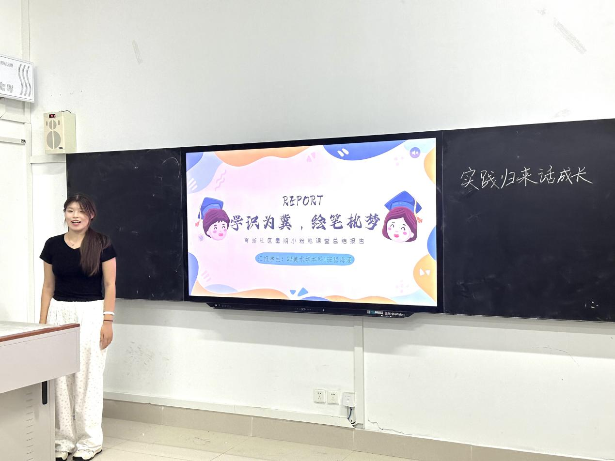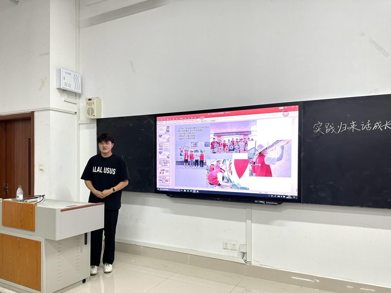 活动紧扣“青春正向上,梦想有光芒”为主题,通过PPT分享了在实践前的准备筹划、实践中的经验见闻、实践后的总结反思。所展示的类型包括青鸟计划、返家乡实践,暑假三下乡,百万大学生进社区等。他们从实践背景及意义、实践目的、实践内容等多角度对项目进行展示。志愿者们充分发挥美术学科的专业优势,将理论知识与社会服务相结合,实现自我价值与社会价值的提升,助力当地乡村振兴,为中国式现代化贡献青春智慧和力量。