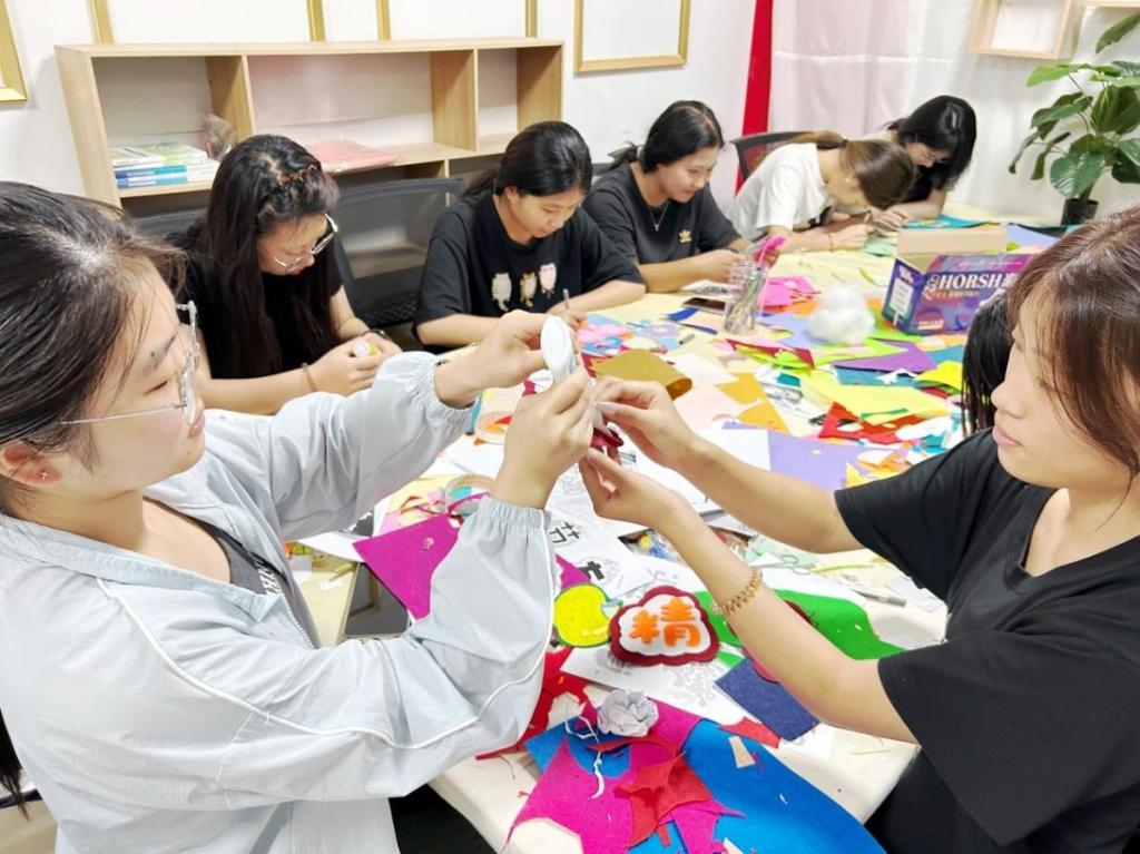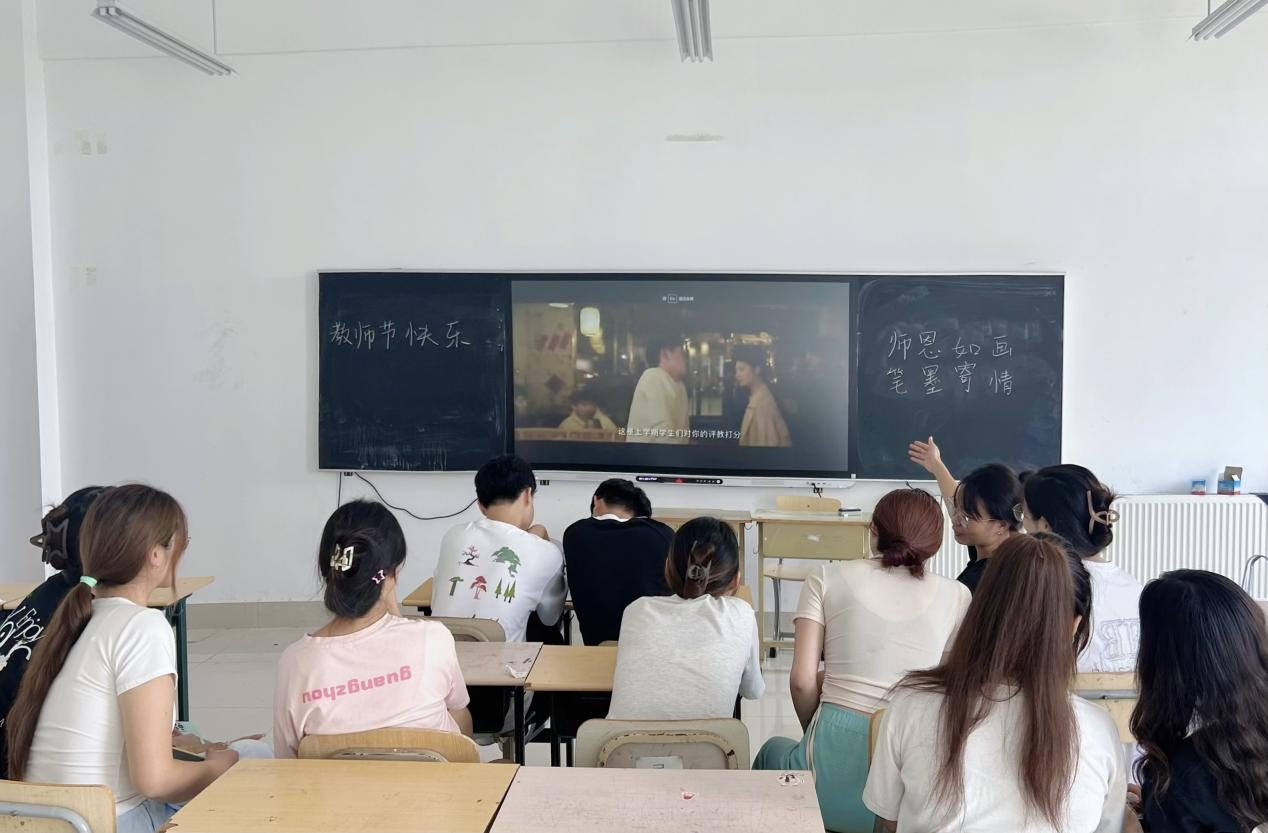 同学们将对老师的感恩之情化作一件件精美的手工艺品和一声声真挚的祝福。活动过程中,同学们以笔为媒,在表白墙上留下了对老师的感激和祝福。还有同学们以手工制作的精美贺卡和不织布挂件等礼物,传递了对老师的感恩之情。此次活动还包括了光影致敬环节,通过放映《国家记忆》、《大先生》、《桃李无言》和《我要当老师》等影片,展现了教育工作者的奉献精神与教育热情,同学们深受触动,更加敬佩那些默默奉献在教育一线的老师们。