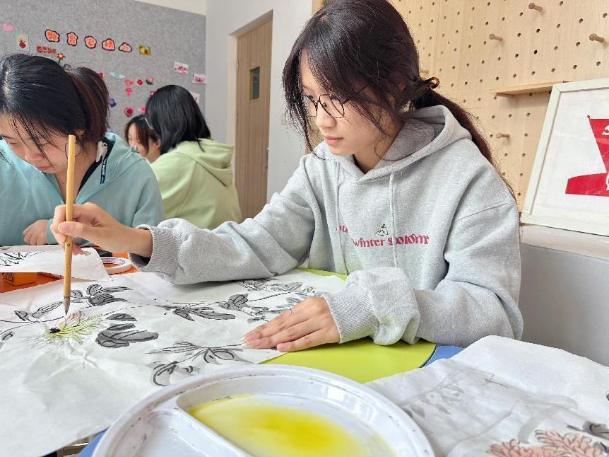 活动,同学们制作生动形象的茱萸,了解了“遍插茱萸”这一传统习俗的意义。随后,手工卡纸制作菊花的活动让现场充满欢声笑语,大家纷纷展示自己的创意与想象。在画菊花的环节中,同学们领略了中国国画的魅力,专注挥动画笔,创作出充满情谊的作品。最后,大家在信纸上写下对长辈与朋友的寄语,表达对他们的关心与祝福,并将这些信纸投递到一站式学生社区心语信箱中,期待在重阳节当天传递温暖。