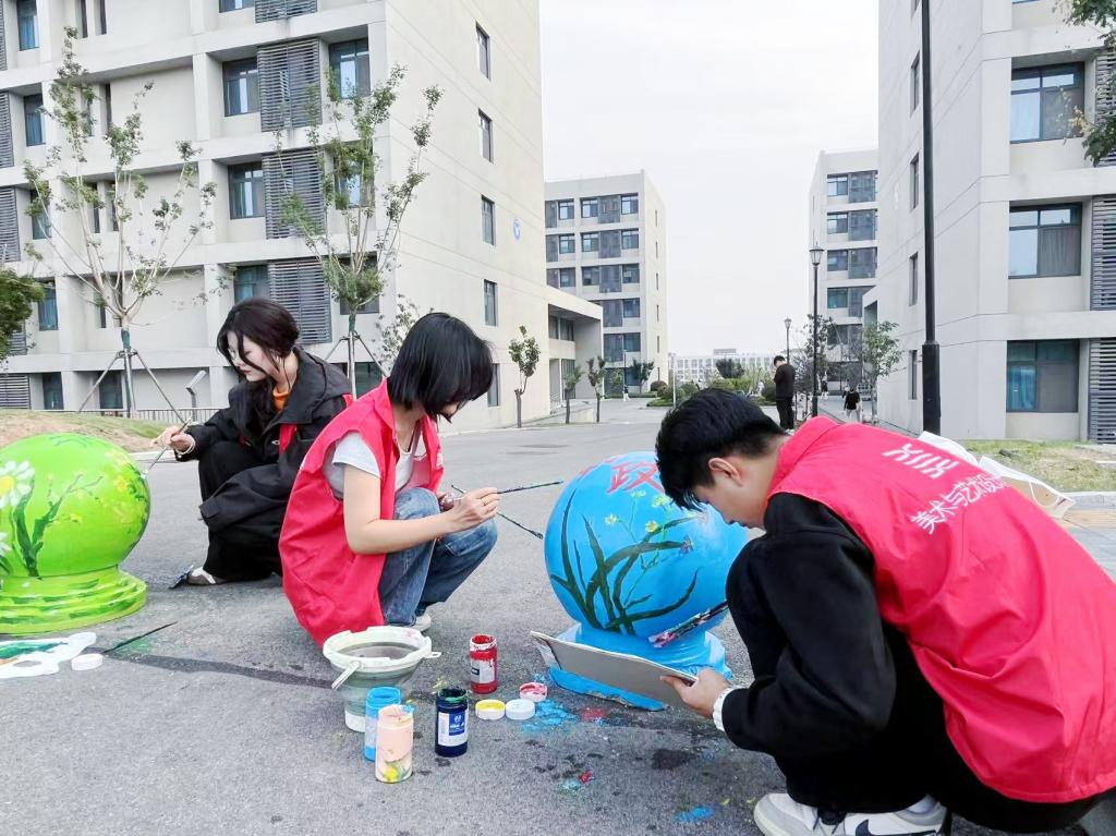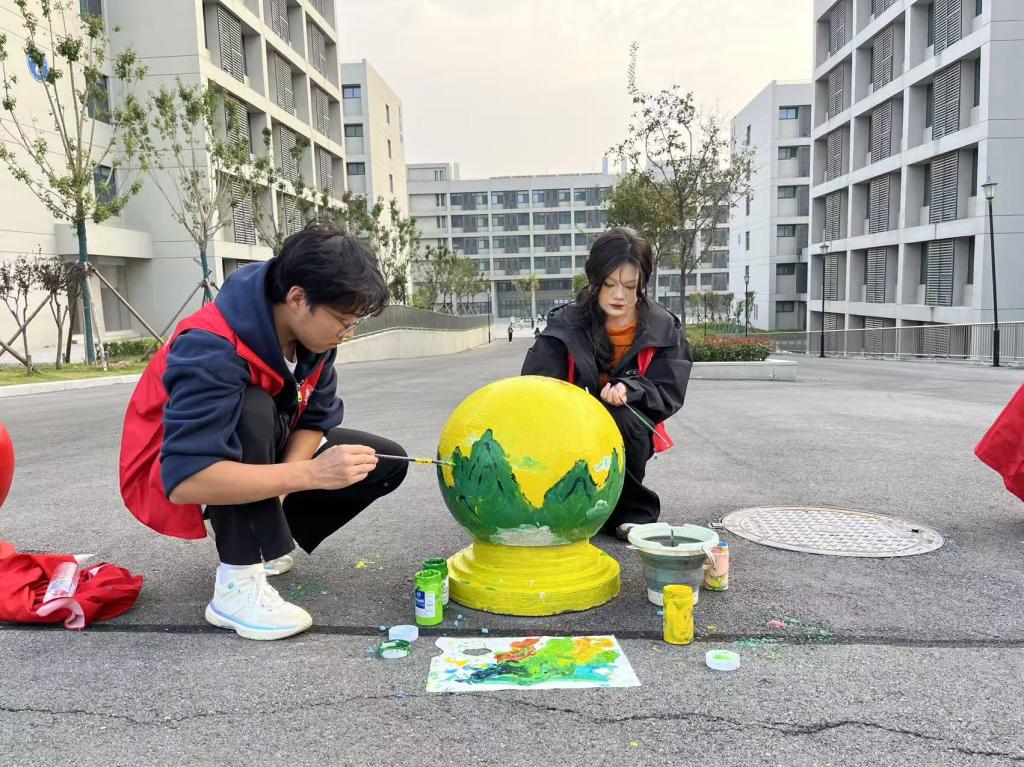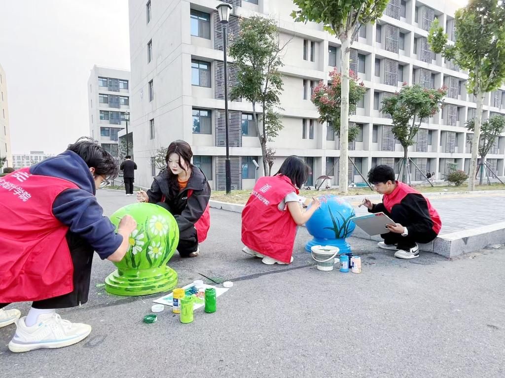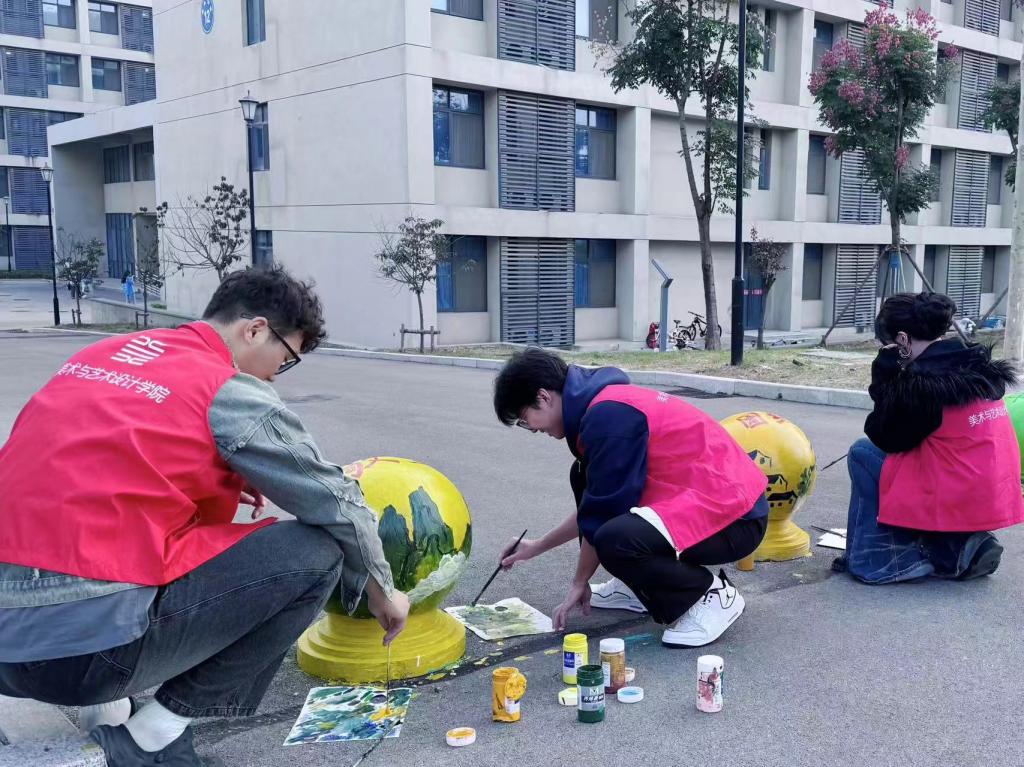 活动中,来自美术与艺术设计学院的60名志愿者沿着宿舍楼周边路面充分发挥自己的想象力和创造力,以石墩为画布,以“强国复兴”为核心,以社会主义核心价值观、廉洁文化为主题重点绘制了“友善路”上的石墩,他们通过自身专业知识与充足的准备共绘制30余个石墩。志愿者们仔细勾勒图案,专心填充颜色,一丝不苟地对待每个绘画环节。一个个石墩在志愿者们的笔下添上色彩,披上外衣,校园环境增添一份独特的美感和视觉享受。