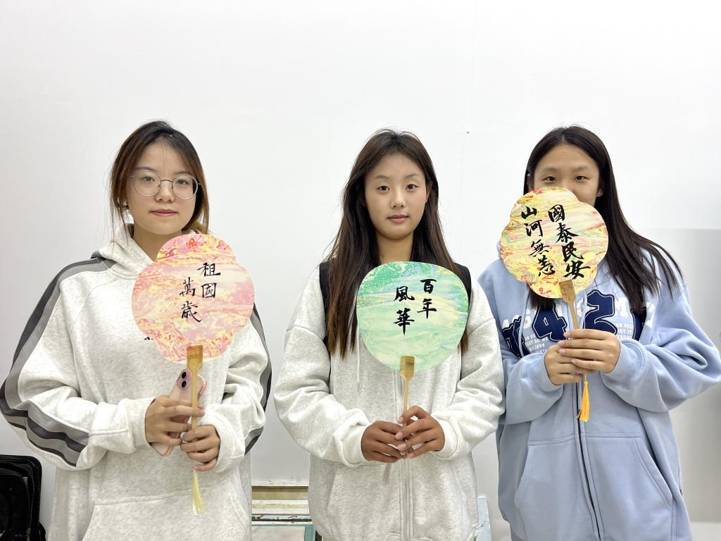 活动现场演示了漆扇制作的步骤,在大地书画协会志愿者的耐心指导下,同学们跃跃欲试,纷纷动手制作漆扇。同学们以漆为墨,以扇为卷,运“飘漆”技法,以点、甩、弹、划等手法,一把把精美的漆扇逐渐成型把漆扇都承载着他们对祖国深情的告白。此外,还进行了剪纸创作民间手工艺协会的志愿者们带领同学们以剪代笔,以纸传情,一幅幅生动鲜活的图案跃然纸上,每一张剪纸都展现了对祖国浓厚的爱意。本次活动共制作了40件作品,其中漆扇作品有20件,剪纸作品有20件。