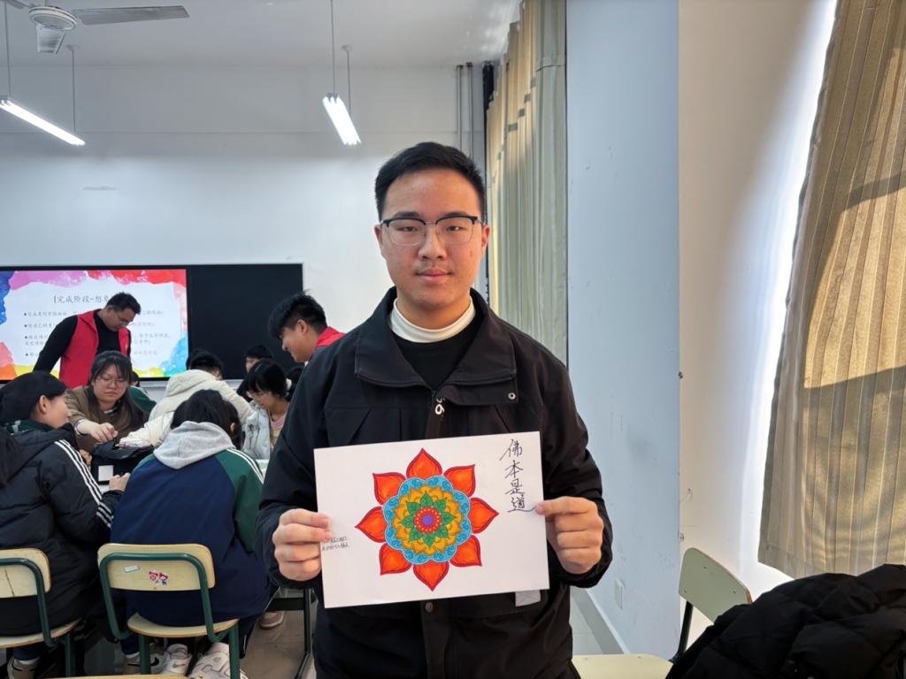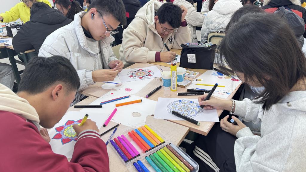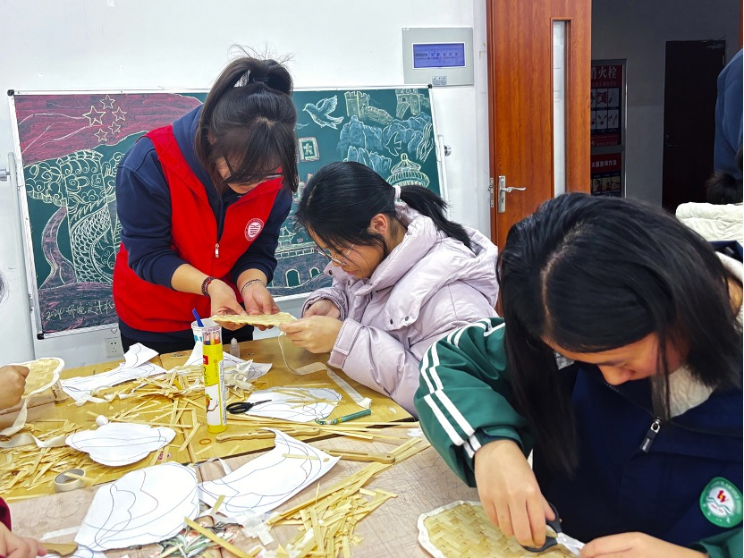 此次美育研学共包括艺术疗愈曼陀罗绘画和非遗竹编团扇两个部分。艺术疗愈曼陀罗绘画是一种舒缓学习压力,通过艺术绘画的方式释放压力的方法,通过破冰游戏感知自我、涂色等环节进行非遗竹编团扇中,向学生们讲解了非遗竹编的文化历史和艺术价值,展示了竹编画的制作技艺带领同学们使用竹条灵活穿梭,编织出一个个精美的团扇。此次活动共创作竹编团扇72件。