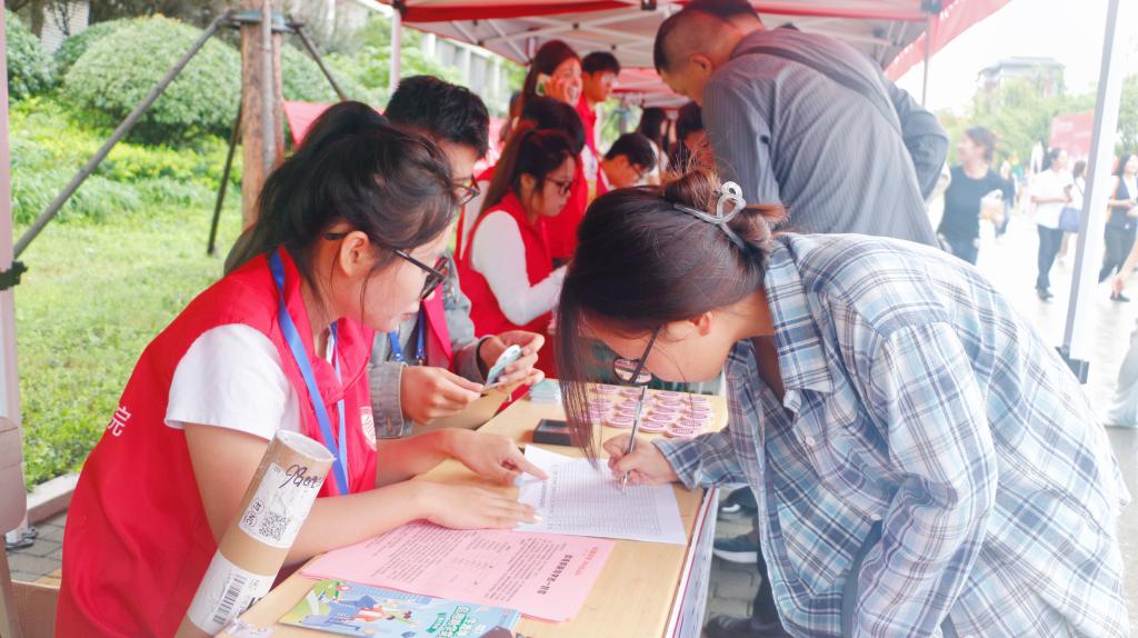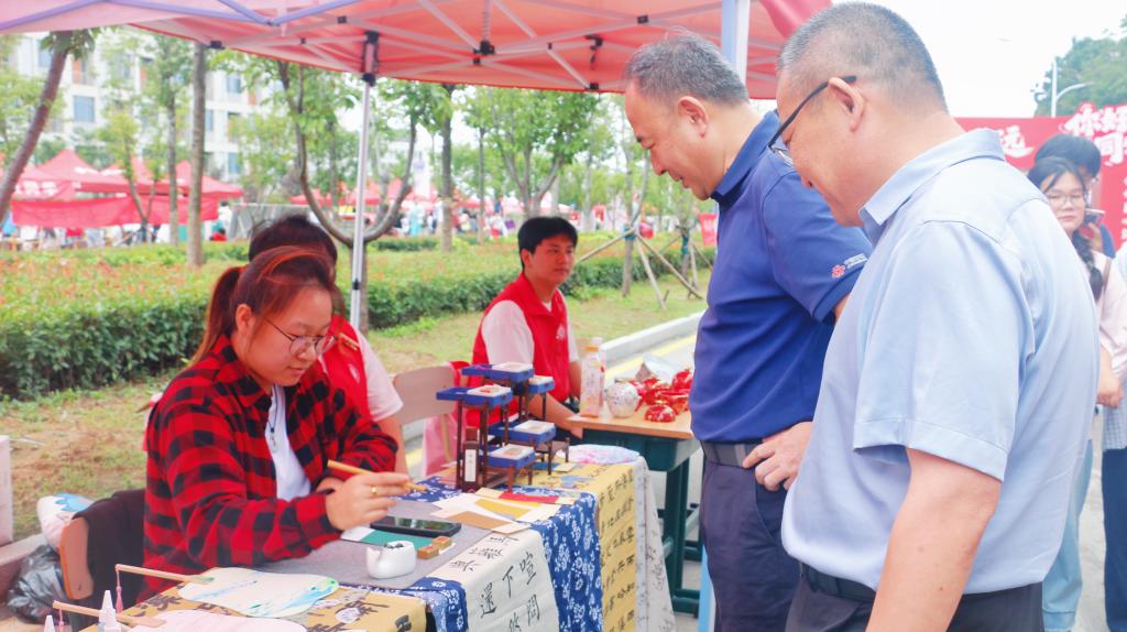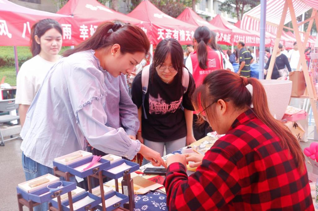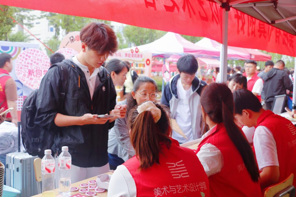 活动现场,伟德victor1946以美创+引航”双驱动打造暖心迎新体验。精心布局的迎新摊位上,设置党员先锋岗并开设“绿色通道”,师生党员全程引导新生完成报到流程,耐心解答入学政策、宿舍入住等疑问,为新生提供“一站式”便捷服务由党员志愿者与学生干部组成的“行李搬运队”用肩扛手提的行动传递关怀,有效缓解了新生及家长携带行李奔波的压力。学院提前为新生准备了定制院徽、卡套、钥匙扣及贺卡等“开学礼”现场还设有新生抽奖箱,为新生开学注入惊喜彩蛋。学生社团带来的特色展示更是成为现场亮点民间手工艺协会不仅带来漆扇、香包非遗缠花、布艺、陶艺等文创好物,还开放非遗漆扇制作体验,邀请新生亲手感受传统工艺;大地书画协会将对新生的祝福融入笔墨,现场创作书法作品;文萃印社则带来迎新专属设计的特色印章,供新生加盖,留下独家入学记忆。